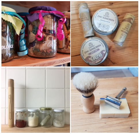 Savons, gels douche, savon rasage, rasoirs, brosses à cheveux, cups féminines, protections hygiéniques, des bases pour faire ses produits cosmétiques maison (huiles végétales, hydrolats) ... en vrac ou non emballé quand c'est possible !
